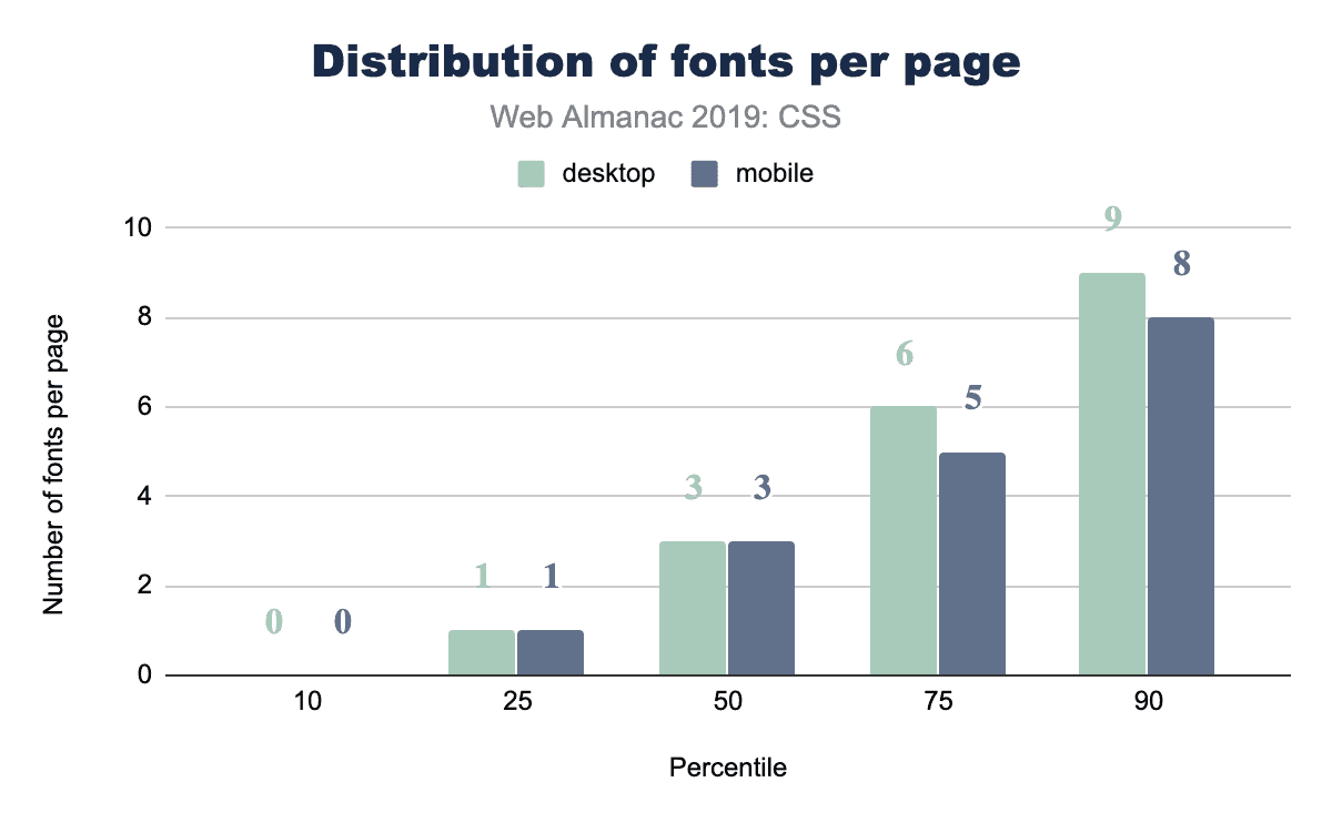 How many web fonts are you loading on your web page: 0? 10? The median number of web fonts per page is 3!