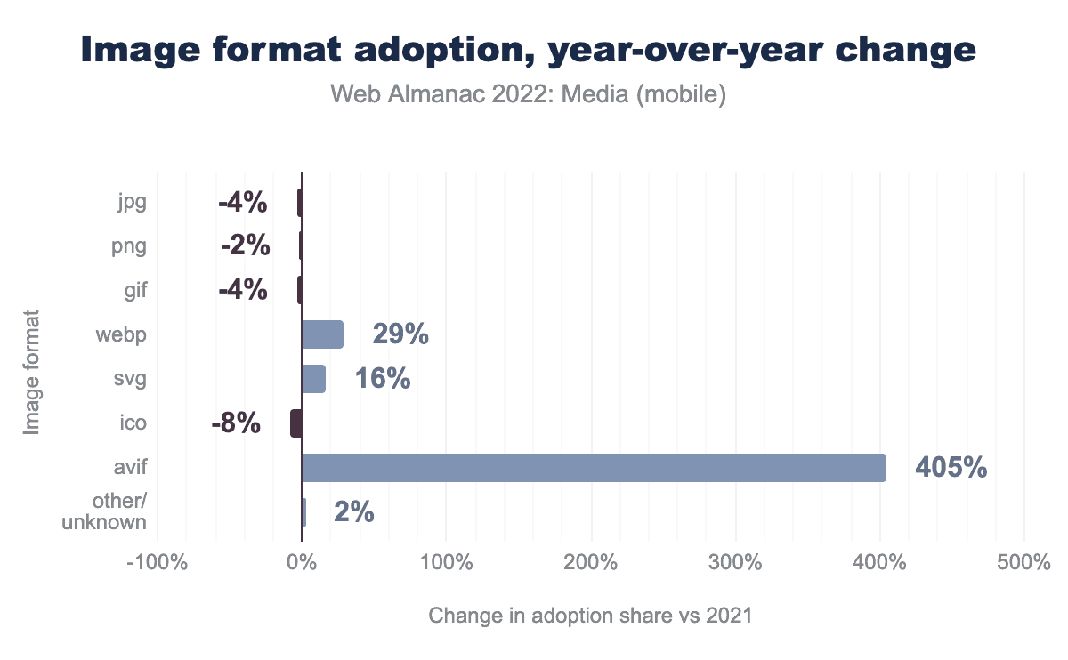 So there you have it, a snapshot of the state of media on the web in 2022. We’ve seen just how pervasive images and – increasingly – videos are on the web, and have gained some insight into how the web’s images and videos are encoded and embedded. The most exciting developments this year are the accelerating adoption of AVIF and the ever-increasing adoption of both lazy-loading and adaptive bitrate streaming.