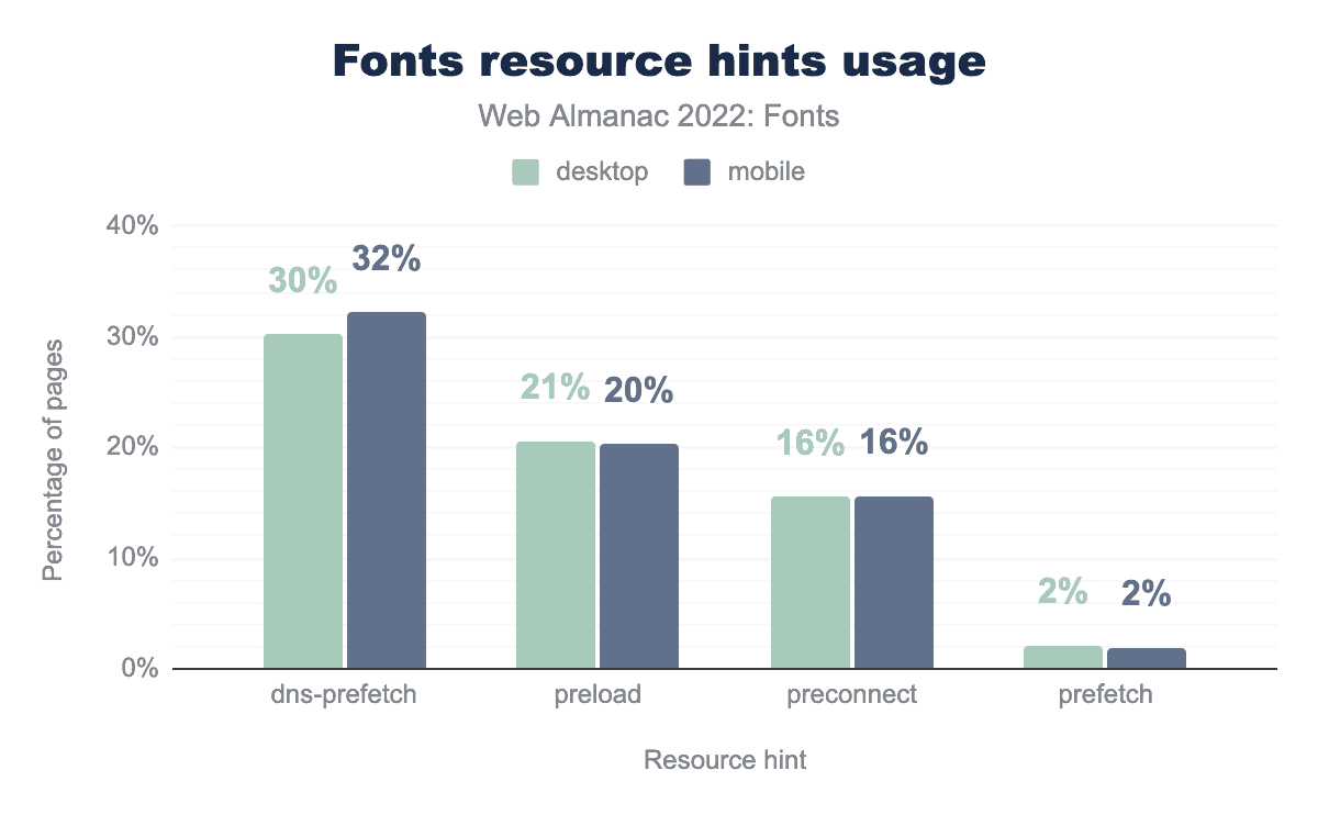Surprisingly, there was no dramatic improvement in the percent of pages that have render-blocking resources. Only 20% of mobile pages pass the audit, which is a mere 1 percentage point increase over last year.