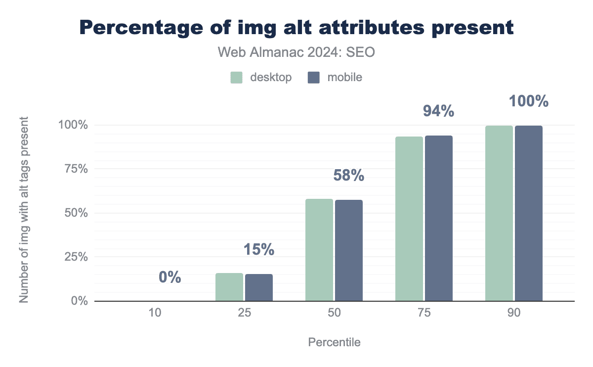 That’s why it’s a little surprising there was a slight uptick in the percentage of pages containing the amp html attribute. In 2024, it went up to 0.27% for mobile crawls compared to 0.19% in 2022. The desktop crawls, however, dropped to just 0.04%, down from 0.07% in 2022.