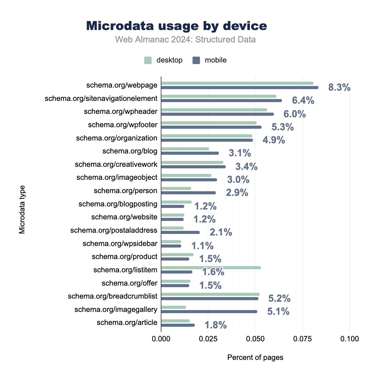 Figure 3.25. Microformats2 usage by device in 2024, comparing desktop and mobile implementations.