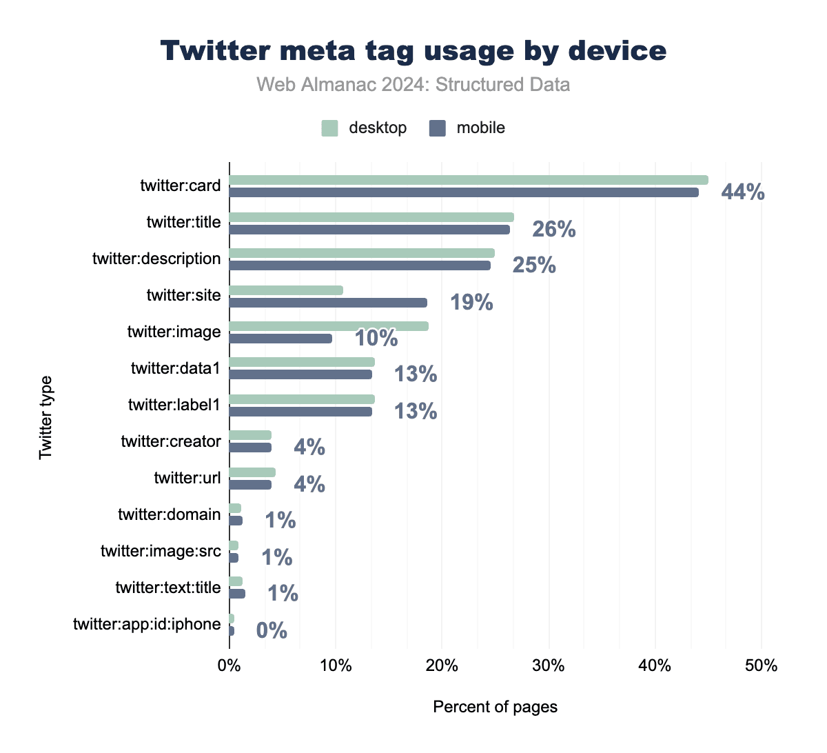 Figure 3.19. Twitter meta tag usage by device.