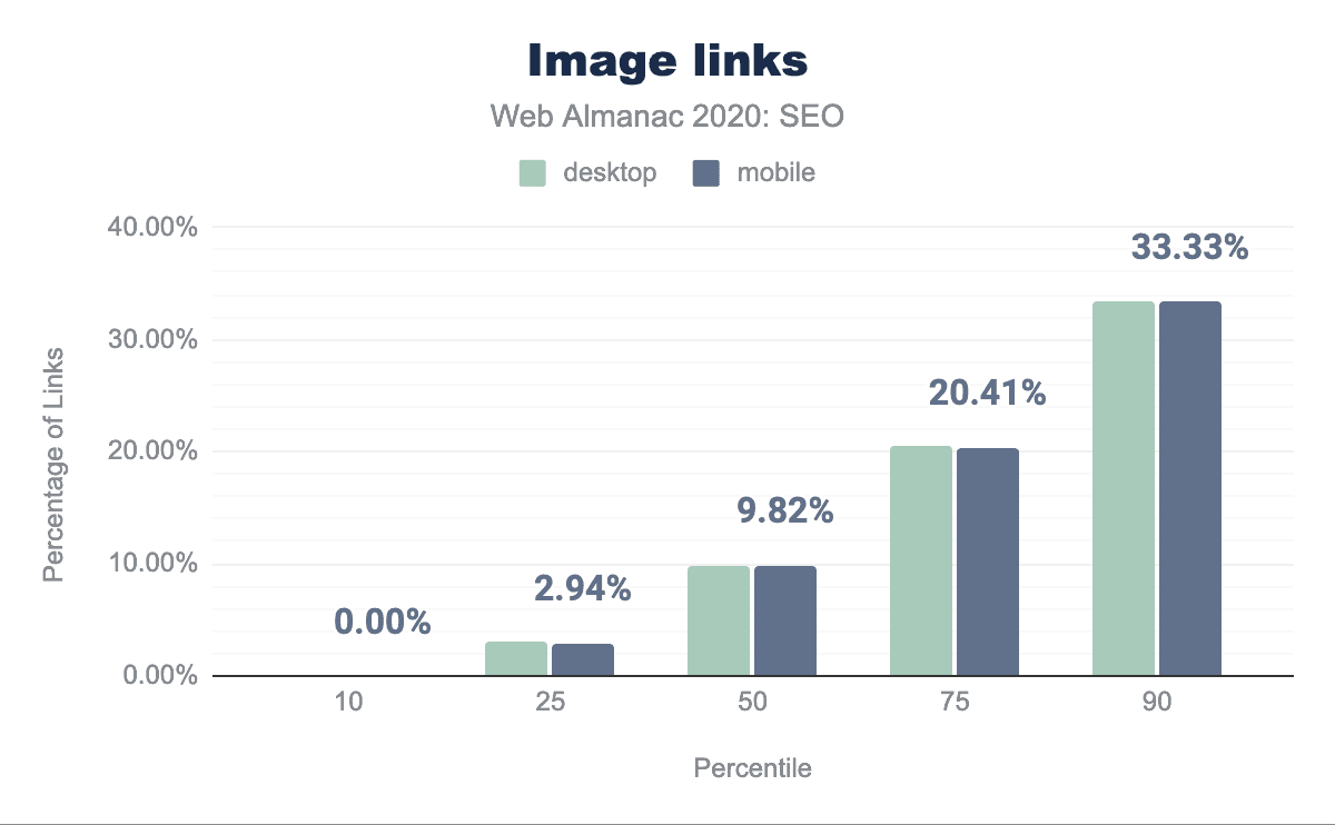 しかし、この1年ですべてが改善されたわけではありません。デスクトップページの中央値には61本の内部リンクが含まれているのに対し、モバイルページの中央値には54本の内部リンクが含まれています。これは昨年と比べてそれぞれ12.8%と10%減少しており、サイトがページを介したクローラビリティとリンクエクイティの流れを改善する能力を最大限に発揮できていないことを示唆しています。