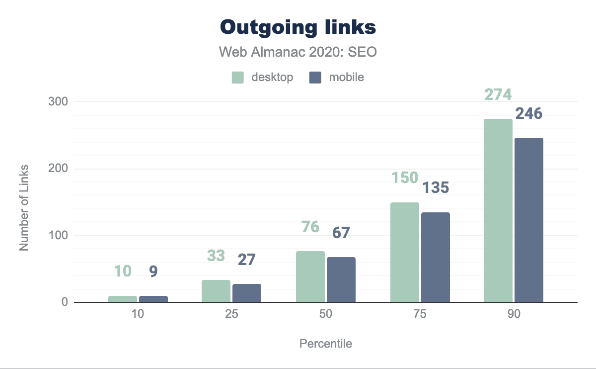 viewportタグをまったく含んでおらず、まだモバイルフレンドリーではないことを示唆しています。 - モバイルページとデスクトップページでは、些細な違いが見られました。たとえばモバイルとデスクトップのリンクの違いは、中央値のウェブページでモバイルのリンクが62であるのに対し、デスクトップのリンクが68であることで示されています。