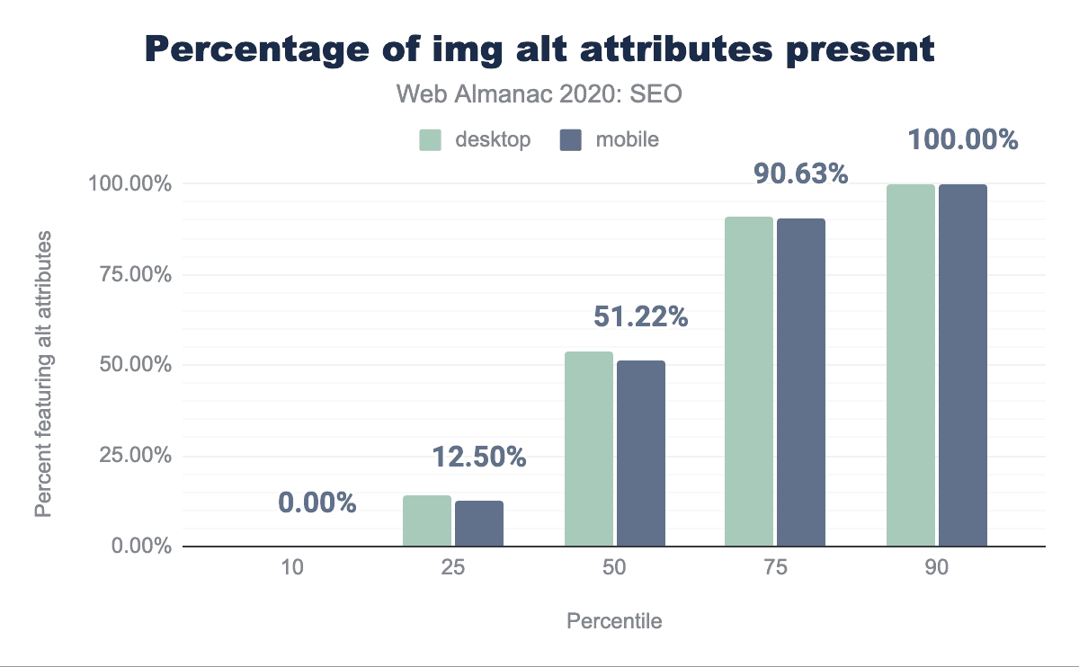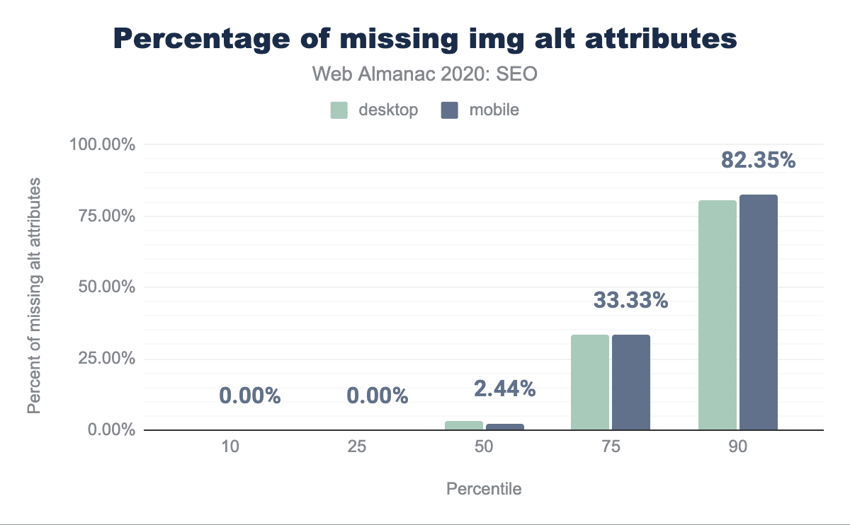 titleタグ: 今年は、デスクトップページの98.75%が1つを備えているのに対し、モバイルページの98.7%もそれを含んでいることがわかりました。 昨年の章では、モバイルページの97.1%にtitleタグが付いていることがわかりました。 -