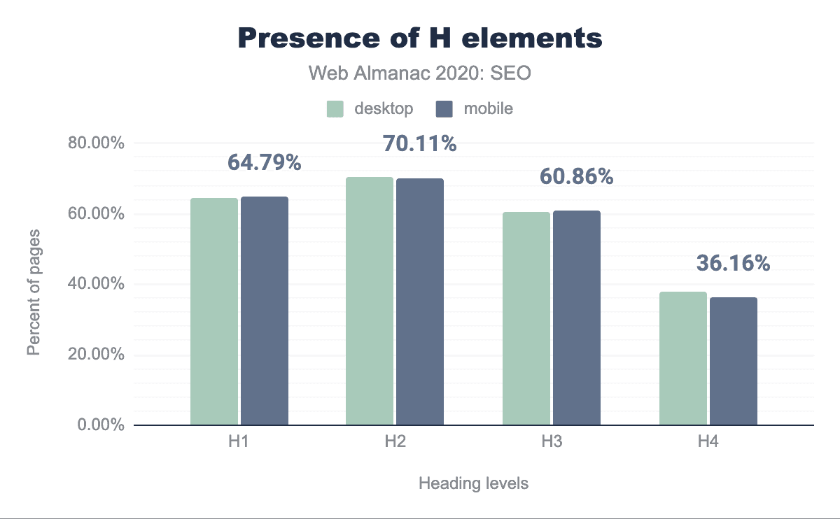 60%以上のページが、モバイルとデスクトップの両方でH1要素(空のものも含む)を使用しています。
